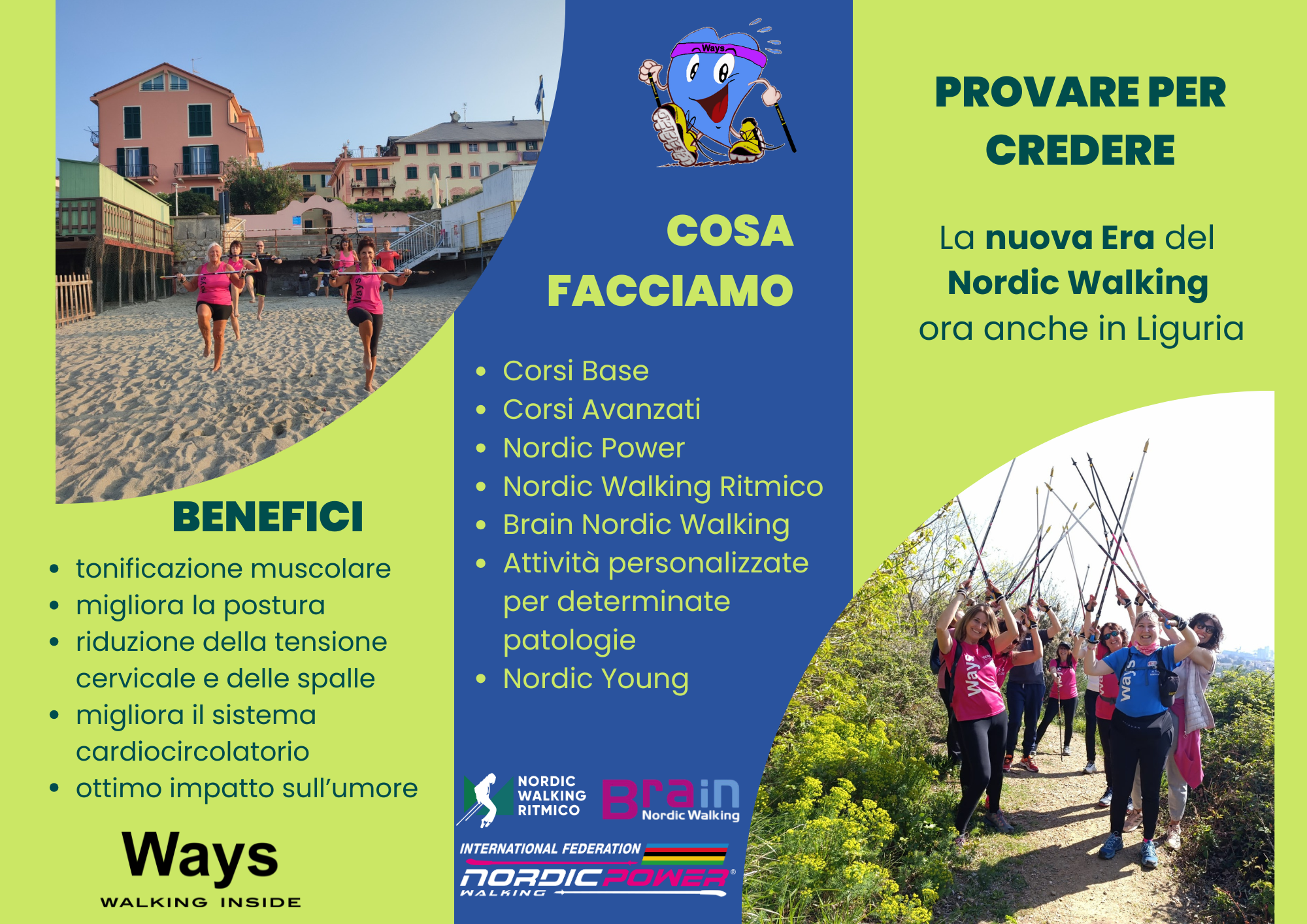 Passi di Vita, pratica e divulga il Nordic Walking nella Provincia di Savona e La Spezia e le sue varianti sono: